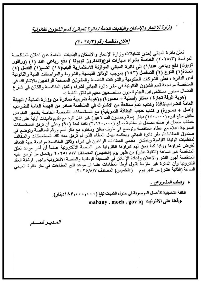اعلان مناقصة رقم (2025/3 )