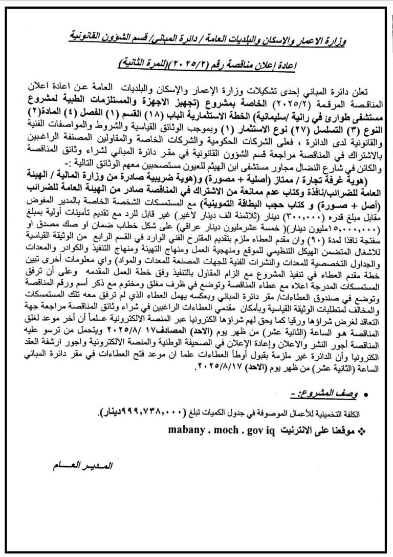 اعادة اعلان ( للمرة الثانية ) مناقصة رقم (2025/2 )