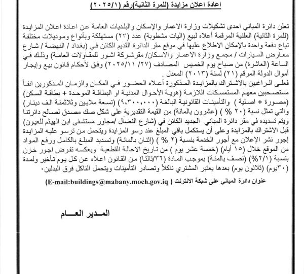 اعلان مناقصة (للمرة الثانية) رقم (2025/1)